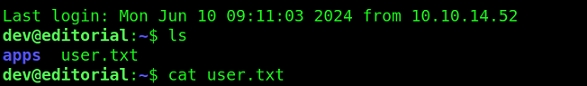 This is an Ubuntu 22.04 machine owned by an editorial. It runs a web application where users can upload and publish their books, but the upload form is vulnerable to SSRF. Exploiting it we can disclose credentials for a low-priv SSH shell. Regarding escalation, we find credentials for a lateral movement inside the commit history of an internal Git repository. Then, we abuse sudo configuration and a vulnerable GitPython library (CVE-2022-24439) to get a root shell.
